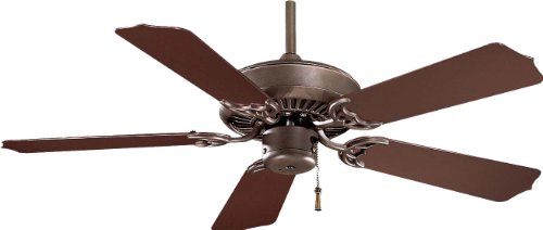 This Outdoor Fan is part of the Sundance Collection and has an Oil Rubbed Bronze Finish. It is Wet Rated, Damp Rated, Outdoor Capable, and Energy Star Compliant. This Oil Rubbed Bronze fan has a Traditional style that is sure to add a touch of charm to any room. The 12 Degree blade pitch allowes for an ideal air flow for any sized room